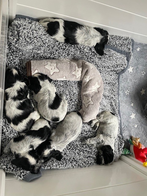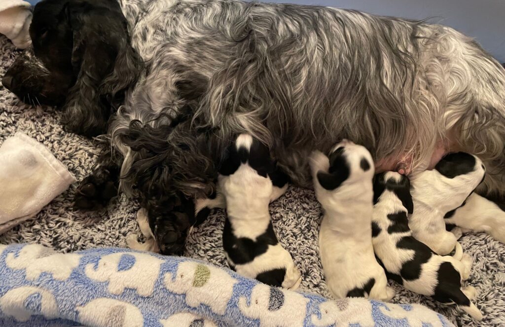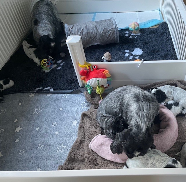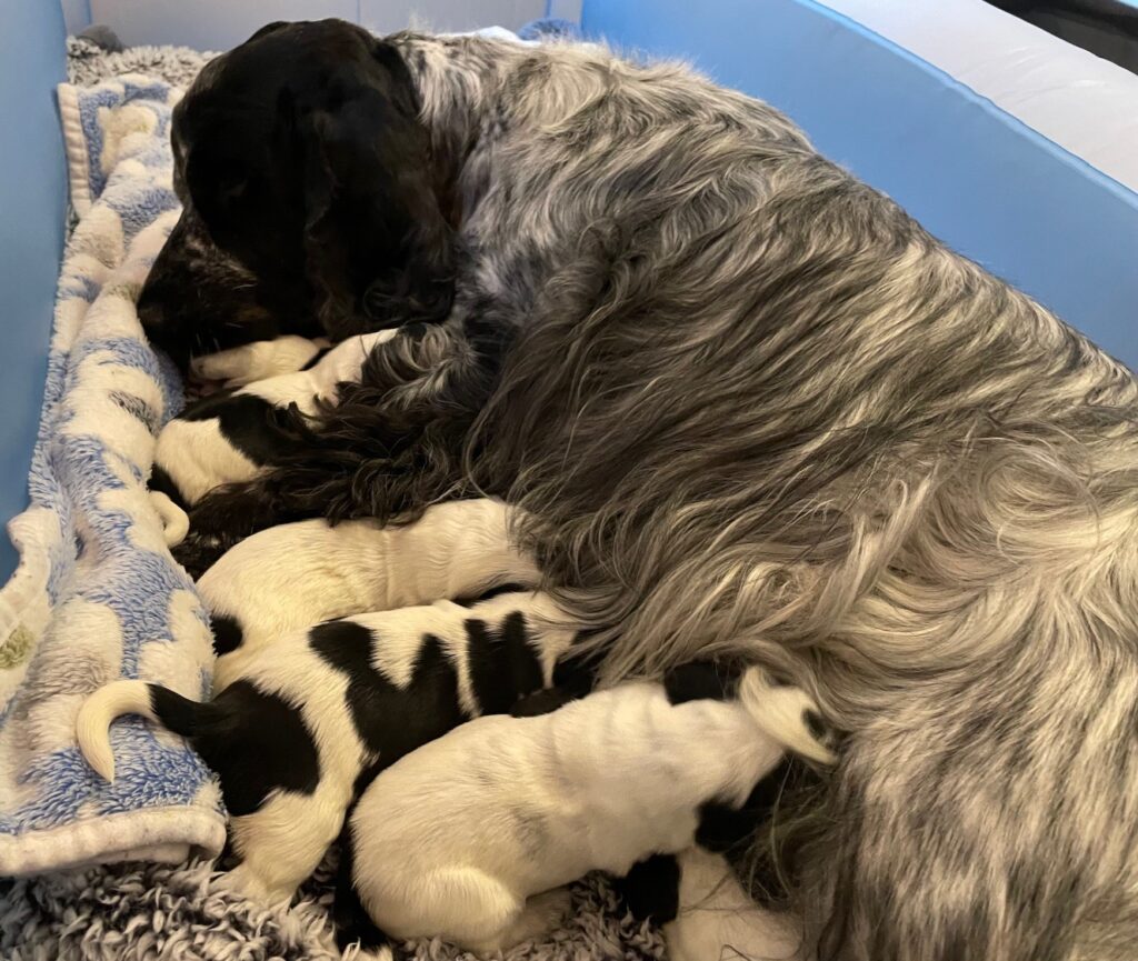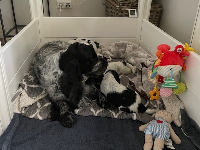 Am 29.09.2025 hat unsere Holly 7 Welpen zur Welt gebracht. Wir freuen uns über 2 Rüden (Blauschimmel) & 5 Hündinnen (4 Blauschimmel & 1 Blauschimmel m. Loh). Leider hat es ein kleiner Rüde nicht geschafft.